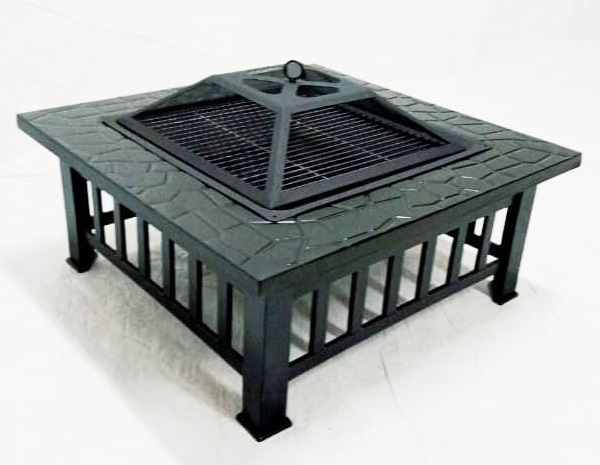 Square Fire Pit and Grill, 80 cm x 80 cm, Black