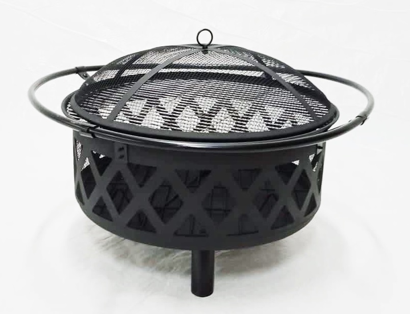 Round Fire Pit and Grill, 80 cm Diameter, Black Color