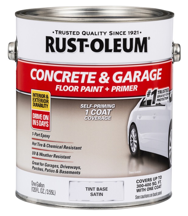 Rust-Oleum Concrete & Garage Floor Paint + Primer, 1 Gallon, Tint Base Satin, Interior/Exterior