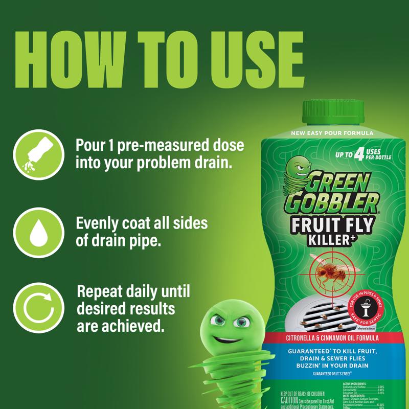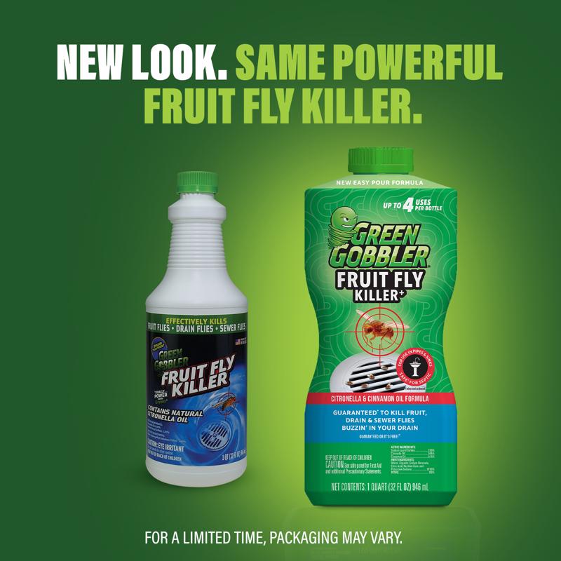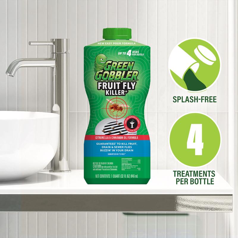 Green Gobbler Fruit Fly Killer, 946 ml, Citronella & Cinnamon Oil Formula, For Use In Pipes & Sinks, Safe For Septic
