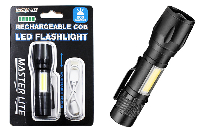 Master Lite Rechargeable COB LED Flashlight, 200 Lumens, 3 Light Modes