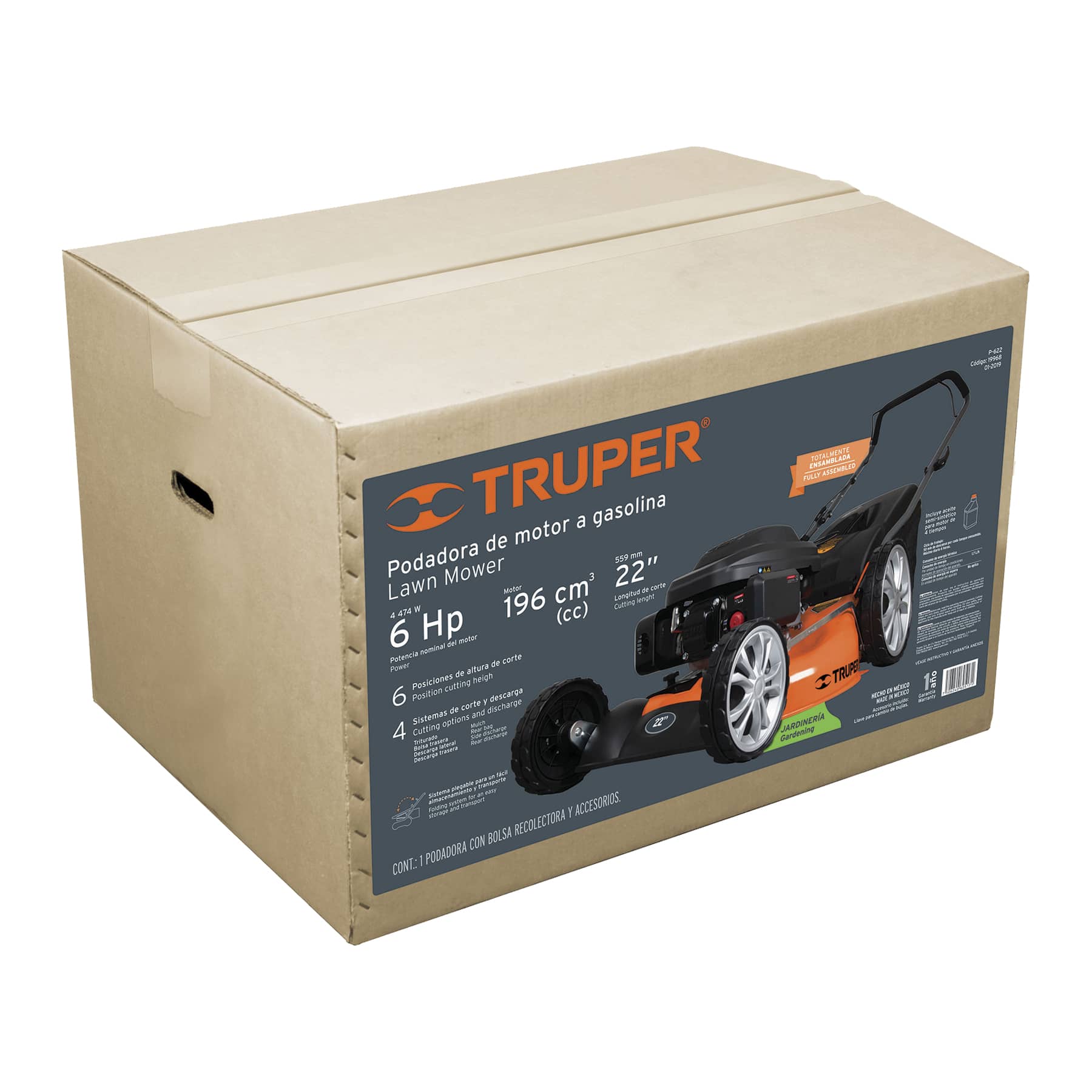 Truper Gasoline Powered Lawn Mower, 22" Cutting Capacity, 196 cc, 6 HP, 900 ml Tank